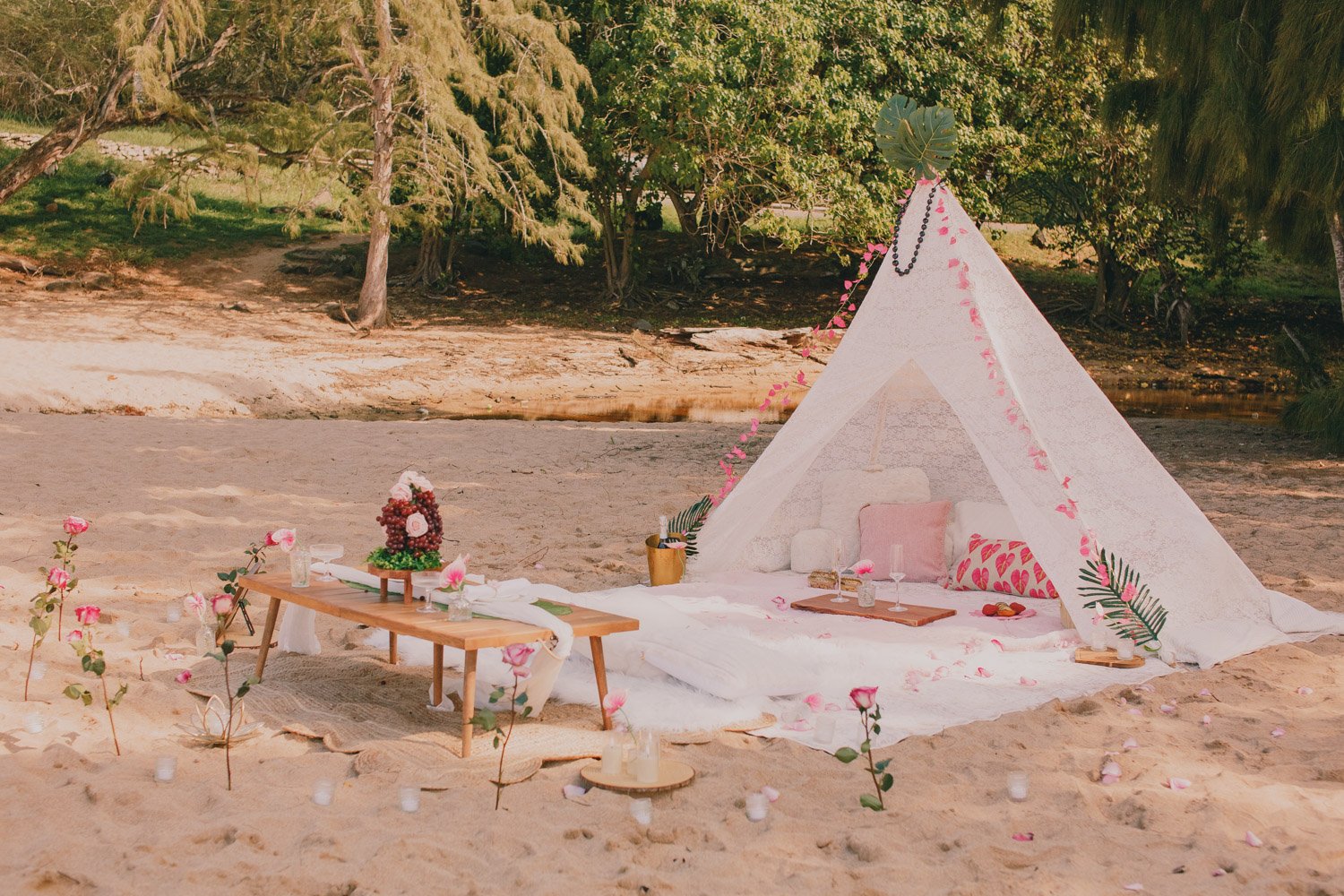 Imagine arriving at your proposal — the Maui coastline stretching behind you, florals arranged with intention, and every detail in place the moment you walk up.